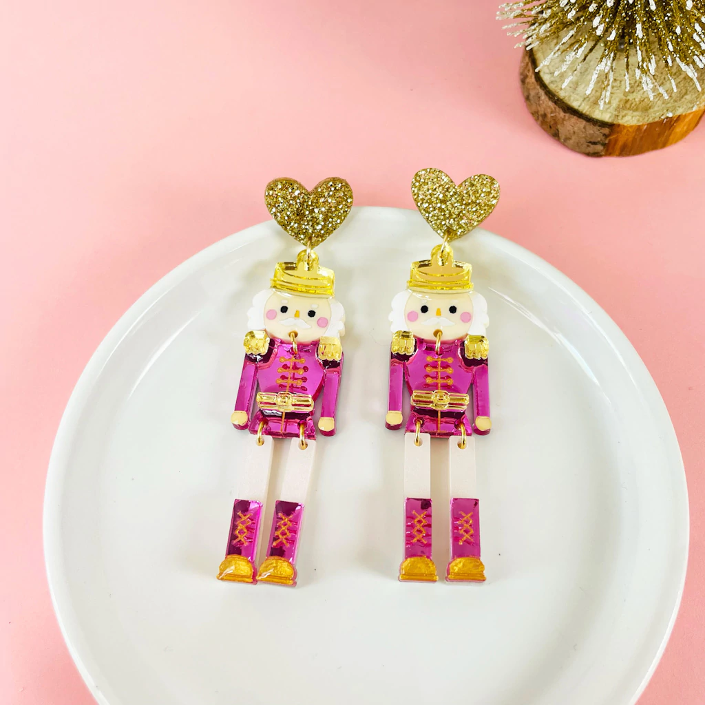 🎀 Aretes de cascanueces – ¡Deslumbra esta Navidad con estos aretes largos en tonos rosas vibrantes! Su diseño único y coqueto, con toques de brillo, es perfecto para regalar o consentirte y celebrar el espíritu navideño con dulzura.