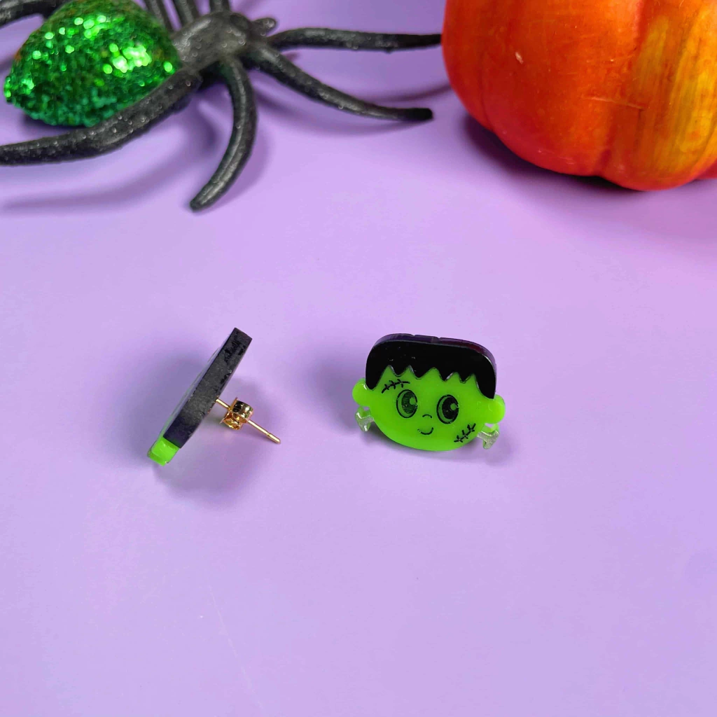 ¡Sorprende con estos originales aretes de Frankenstein! Diseñados por manos mexicanas, agregan un toque divertido y único a tu estilo en Halloween. Los broqueles son de chapa de oro 14 kilates para orejas sensibles y miden 1.6 cm de largo ¡Atrévete a ser diferente con estos aretes de Frankenstein!